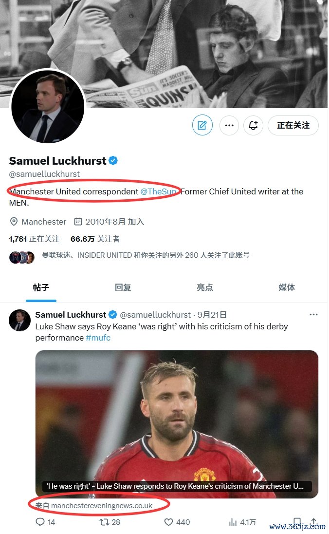 卢克赫斯特的个人账号简介已经改为:“太阳报曼联跟队记者,运动天地家园足球直播吧前曼晚首席曼联跟队。”