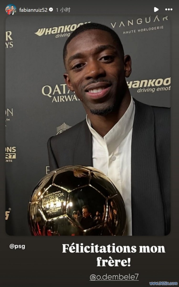 一同入围候选,法比安社媒祝贺登贝莱夺金球奖:恭喜我的兄弟
