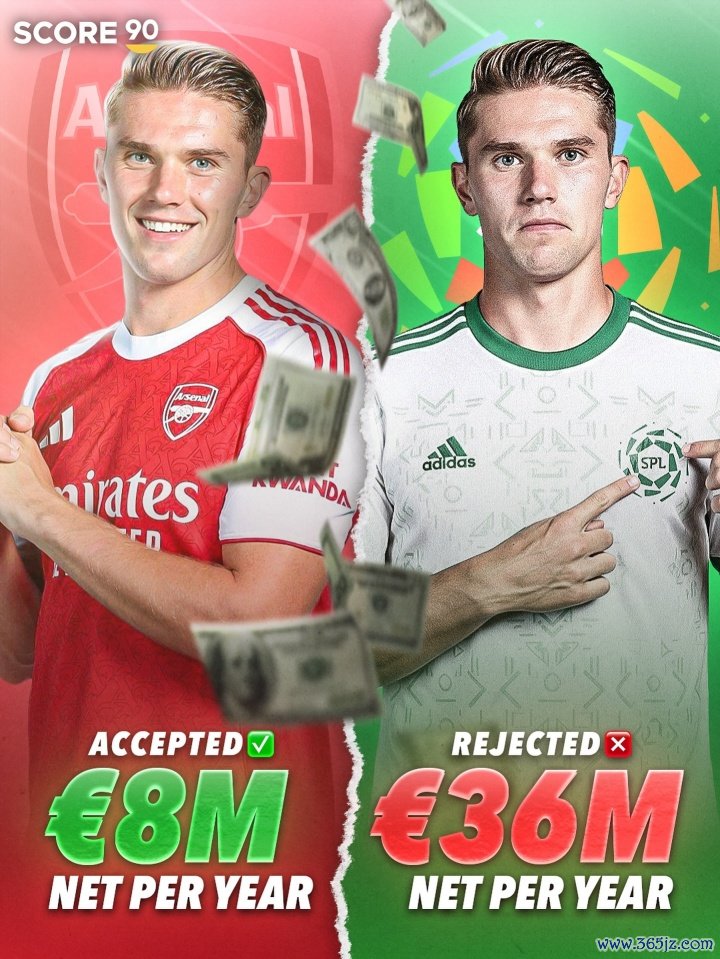 10月11日讯 日前约克雷斯的经纪人乔纳森-查尔基亚斯参加播客节目,透露了约克雷斯今夏加盟阿森纳的细节。经纪人表示,约克雷斯在今年夏窗拒绝了沙特球队超过3600万欧元税后年薪的合同。