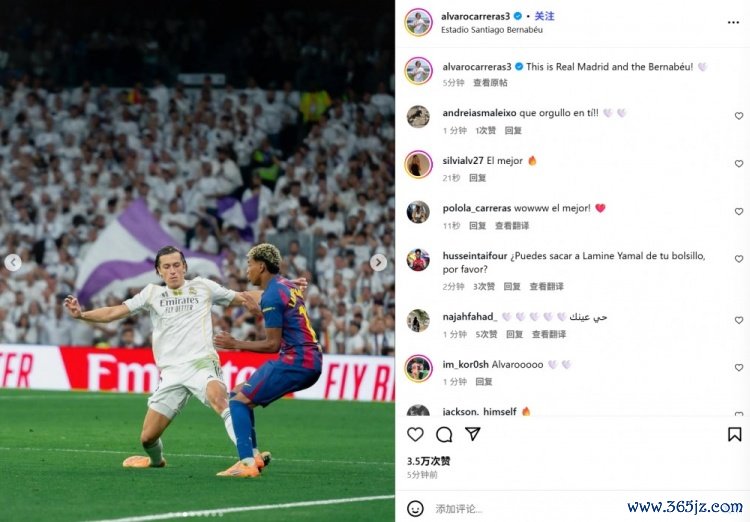 他也在赛后通过社媒晒出同亚马尔的对位照中超, 中超并配文:“这就是皇家马德里和伯纳乌运动活动 场 !”