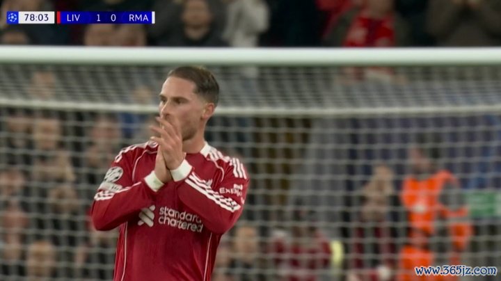 第79分钟麦卡被换下,接受安菲尔德全场掌声