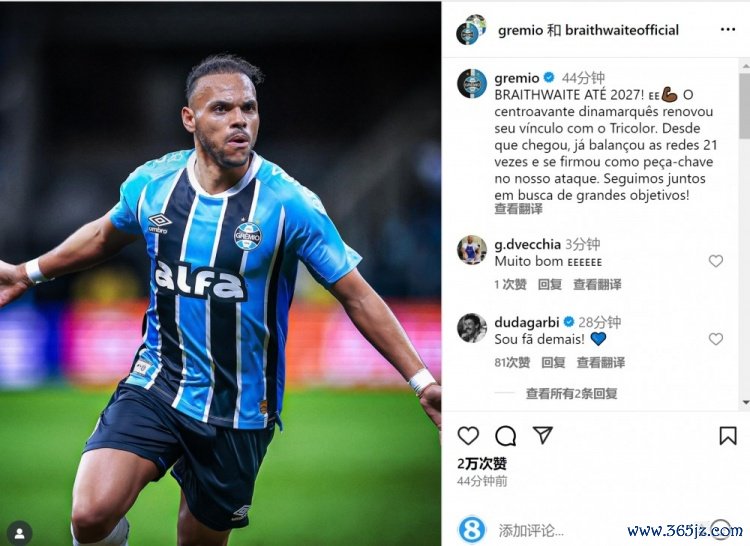 7月22日讯 格雷米奥官方宣布,34岁前场球员布莱斯维特与俱乐部续约至2027年。