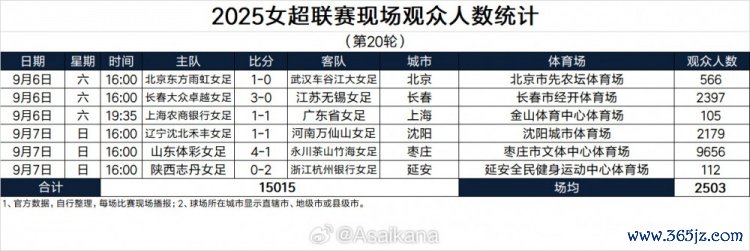 2025女超职业联赛 现场观赛人群 人数统计(第20轮)