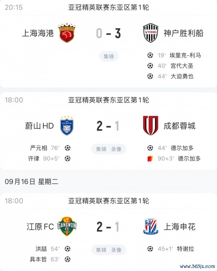 全军覆没!中超三队亚冠精英首轮全部告负,得失球2-7+均不敌日韩