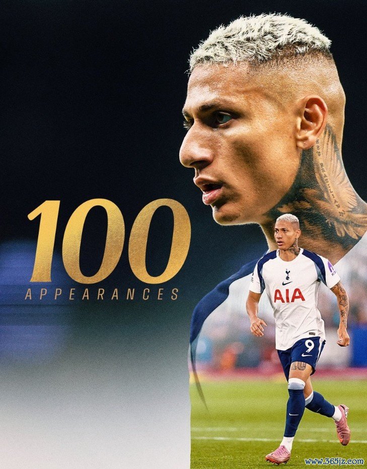 理查利森迎热刺生涯百场里程碑,此前贡献23球11助功