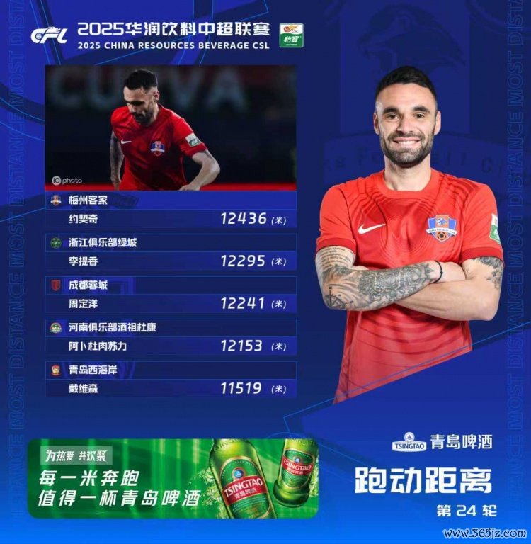 10月5日讯 中超职业联赛 第24轮的补赛结束后,官方公布了本轮的移动距离 榜。排在本轮跑动榜榜首的是梅州客家外援约契奇,他的移动距离 为12436米。