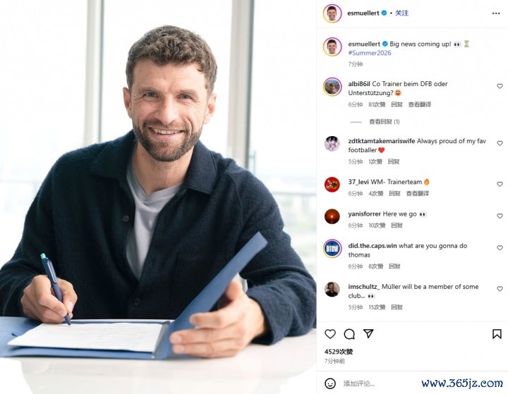 参加世界杯赛 ?👀穆勒社媒预告将宣布大新闻,带2026年夏天标签